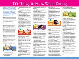 100 Things to Know When Dating gives a list of 100 questions Christians should ask when considering a romantic relationship or looking for Christian dating advice. When getting close to another person—whether you just met online, are good friends, or exploring something more—it’s important to get to know that person.