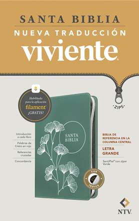The Biblia de referencia en la columna central NTV, letra grande con Filament [NTV Thinline Center-Column Reference Bible, Large Print, Filament Enabled] offers an ideal combination of legibility, attractive design, and functionality. Featuring readable text and a well-organized layout, this Bible includes center-column cross-references in a compact and easy-to-carry size.