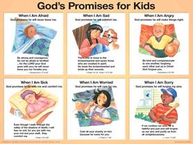God has promised to be with us in every trouble and to give us strength and courage. He has promised to comfort us and heal our broken hearts. Here are some of God’s basic promises every person needs to know. Great for scripture memory. Helps train children to look to God when they have problems in life (when they are worried, scared, sad, angry and more).