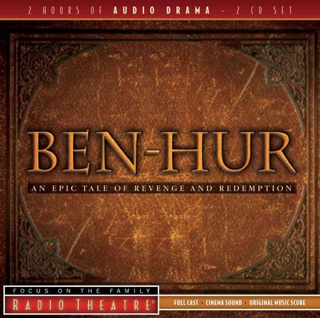 Ben-Hur An unforgettable account of betrayal, revenge, redemption, Focus on the Family Radio Theatre’s production of Ben-Hur tells the tale of a nobleman who fell from Roman favor and was sentenced to live as a slave—all at the hands of his childhood friend, Messala. Once nearly brothers, any hope of reconciliation is dashed after Messala is seriously injured during a vicious chariot race won by the vindictive Ben-Hur. But what makes this adaptation of Lew Wallace’s best-selling story unforgettable is the changed man Ben-Hur becomes after seeing Christ on the cross.