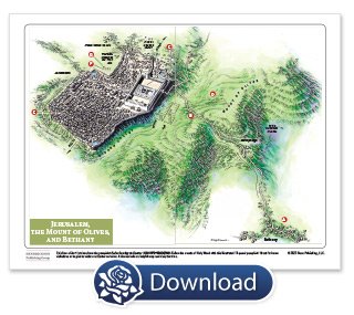 Your free Easter download includes a labeled map showing the locations of key Easter events and a list of what happened every day before, during, and after the crucifixion.