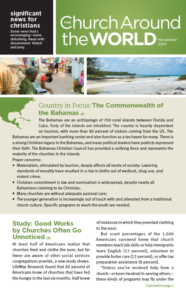 The Church Around the World bulletin is an ideal way to keep you and your congregation informed on the worldwide developments that affect the work of the church. This bulletin insert offers timely news about issues that matter and helps church leaders and laymen alike become more aware of how God’s people are making a difference around the globe and how they can get more involved.