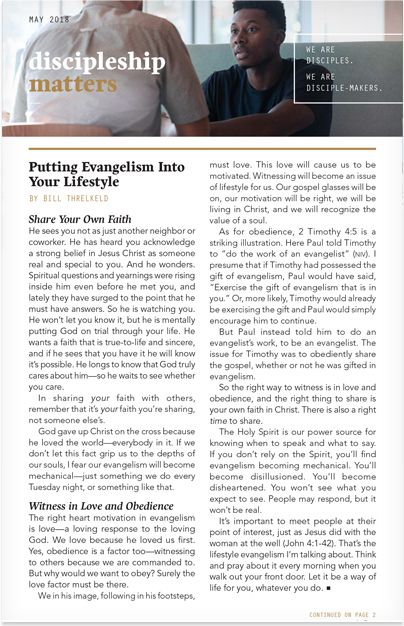 Do you have a desire to go deeper in your walk with God? Do you want to learn how to walk alongside others as they grow toward God? Discipleship Matters is a resource for those who respond with a hearty yes. Readers will learn what discipleship looks like and how it grows through the stories and guidance of experienced disciple-makers. Each bulletin includes insightful articles about Christian discipleship and Scripture that reinforces those same themes. This is a useful tool for equipping Christians to practice personal discipleship and for encouraging a culture of discipleship in your church.