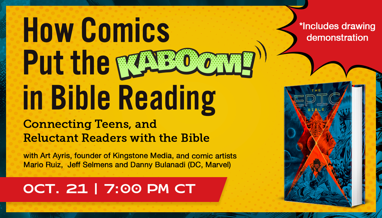 Get swept away by God’s awesome story in this riveting graphic Bible. The Epic Bible tells the central story of the Bible from the Old Testament to the New Testament, with dramatic illustrations created by some of DC and Marvel’s best comic book artists. Whether you’re reading the Bible for the first time or looking for a fresh perspective, The Epic Bible’s cinematic storytelling will make God’s Word come alive and reveal His redemption plan for all of humanity.